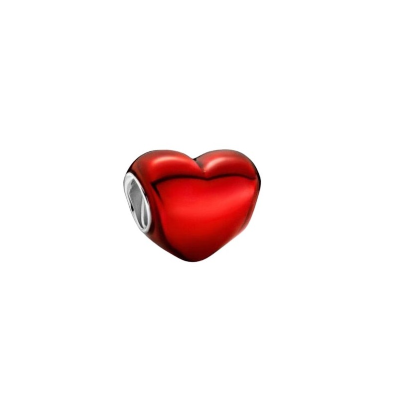 Abalorio fabricado en plata de ley, en forma de corazón, lacado en rojo. Agujero de 5 mm que lo hace compatible con diversas marcas de pulseras como Pandora, Chamilia, etc... Se entrega en estuche de regalo.