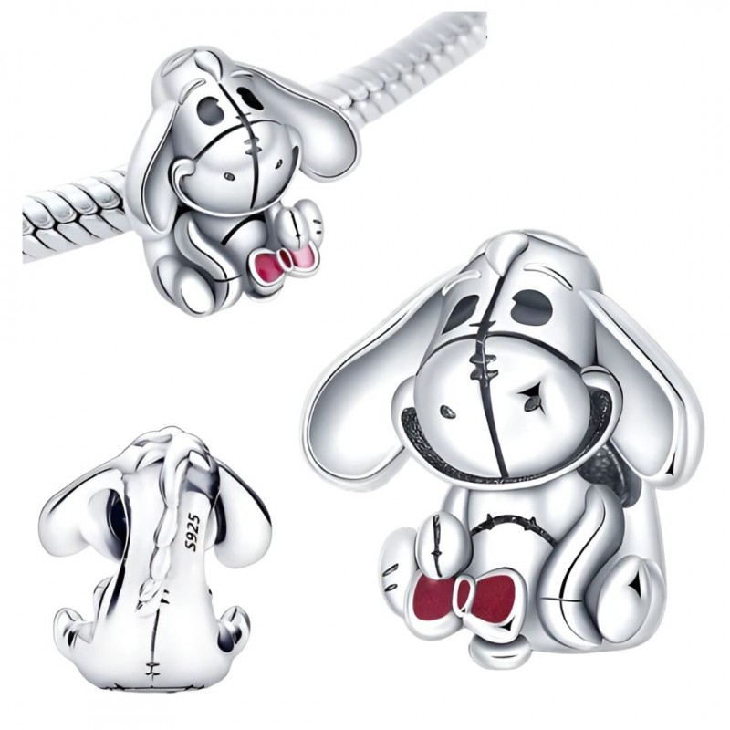 ABALORIO CHARM PLATA DE LEY BURRITO LAZO ROJO COMPATIBLE CON DIFERENTES MARCAS, COMO PANDORA, CHAMILIA...