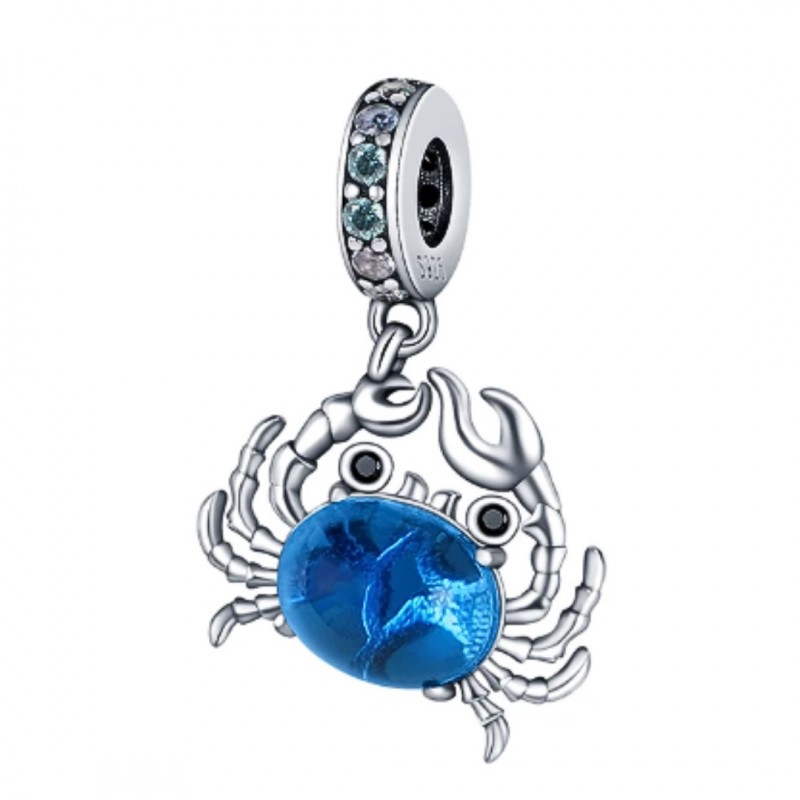 Abalorio charm fabricado en plata de ley 925 mm, en forma de mano de cangrejo con caparazón de piedra azul. Compatible con todas las marcas de pulseras incluída Pandora, por su agujero de 5 mm de diámetro. Se entrega en estuche de regalo. Entregas rápidas en 24-72 horas laborables a península.