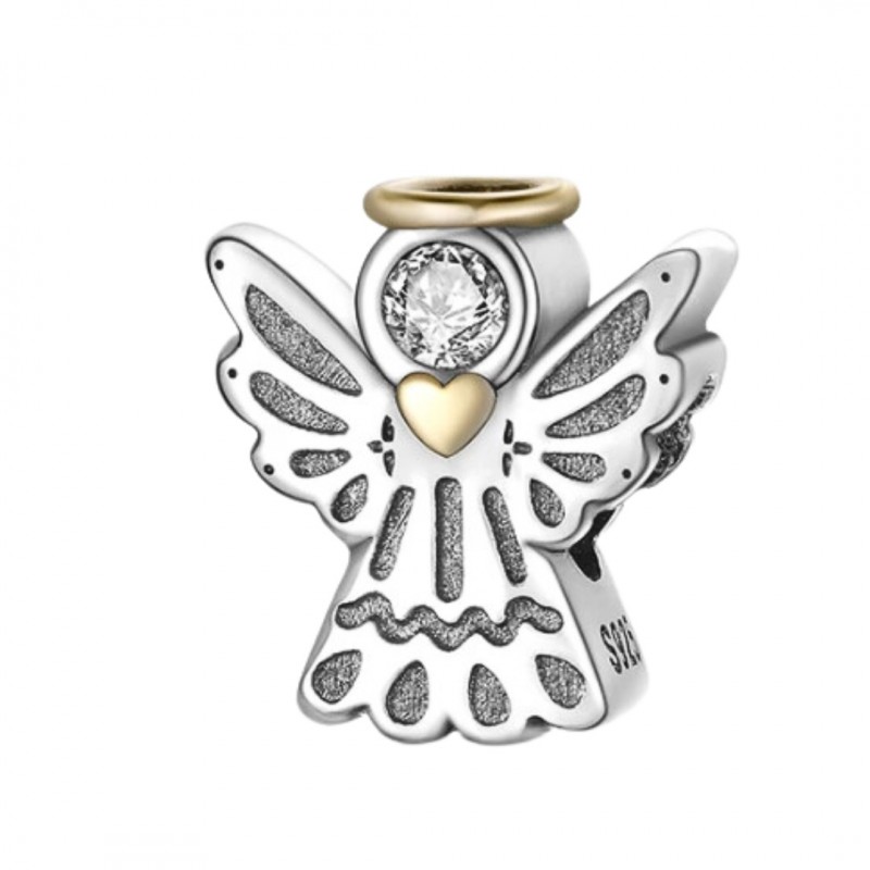 ABALORIO CHARM PLATA DE LEY ANGELITO CIRCONITA BLANCA CARA CORAZON Y ARO DORADO COMPATIBLE CON PANDORA