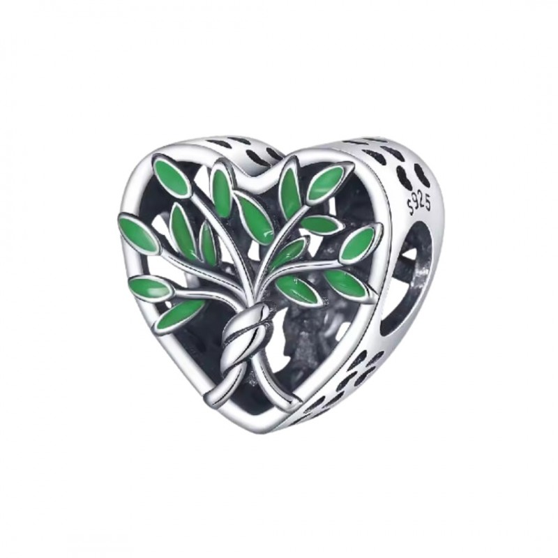 ABALORIO CHARM PLATA DE LEY CORAZÓN ÁRBOL DE LA VIDA LACADO, AGUJERO DE 5 MM COMPATIBLE CON PANDORA