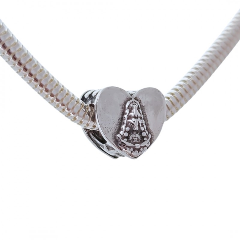 ABALORIO CHARM PLATA DE LEY VIRGEN DEL ROCÍO CORAZÓN COMPATIBLE CON PANDORA AGUJERO DE 5 MM