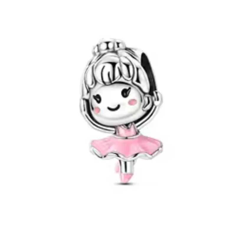 ABALORIO PLATA DE LEY NIÑA BAILARINA BALLET VESTIDO ROSA COMPATIBLE CON PANDORA