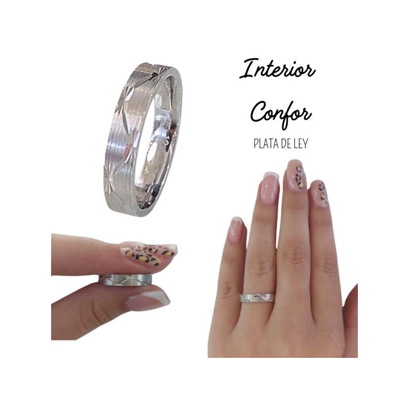 ANILLOS ALIANZA PLATA DE LEY RODIADA INTERIOR CONFORT ESTRELLITA TALLADA EN LOS FILOS