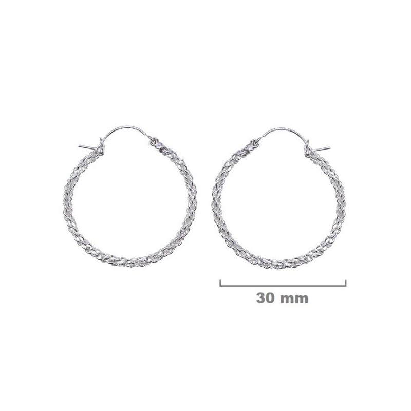 Argollas aros fabricados en plata de ley 925 mm, en forma de cordón trenzado de 2.5 mm de grosor y cierre de bisagra y palillo, para mayor comodidad en su colocación. Dimensiones: 30 mm de diámetro. Se entregan en estuche de regalo. Envíos rápidos a península en 24-72 horas laborables a península.
