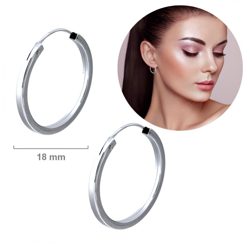 Argollas aros fabricados en plata de ley 925 mm, de tubo hueco cuadrado de 1.5 mm de grosor y 18 mm ( 1.8 centímetro) de diámetro. Cuenta con cierre de bisagra y palillo que se introduce en la misma argolla. Se entrega en estuche de regalo. Entregas rápidas a península en 24-72 horas laborables.