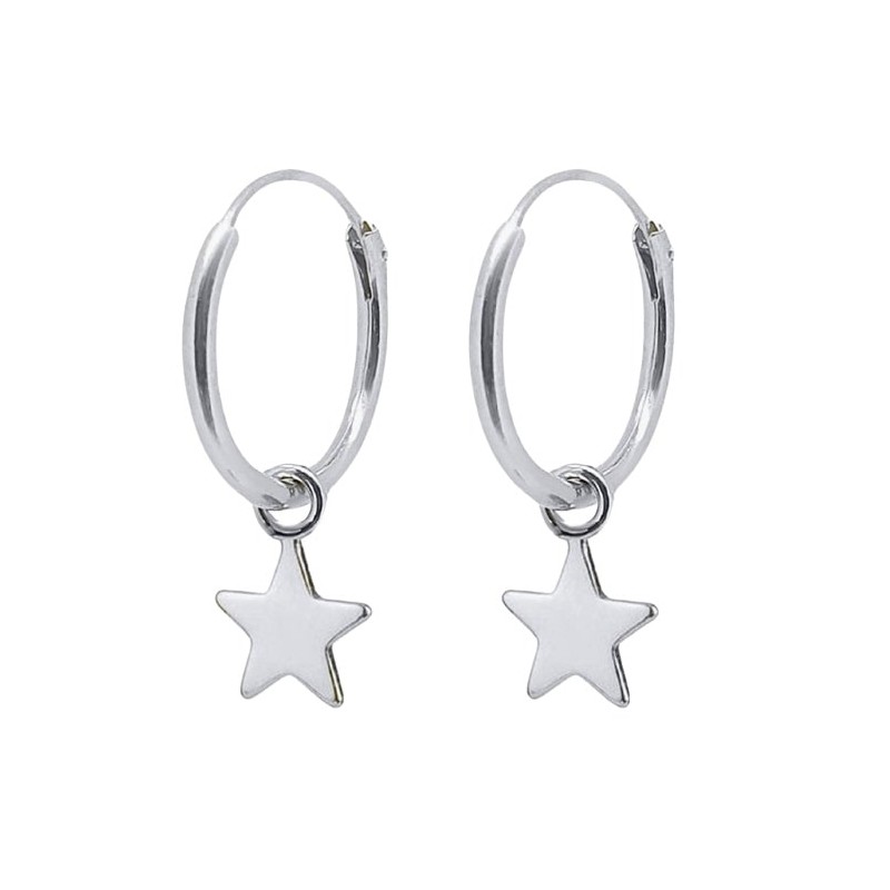ARGOLLAS PLATA DE LEY 1,2 CM DIÁMETRO ESTRELLA COLGANDO PEQUEÑA