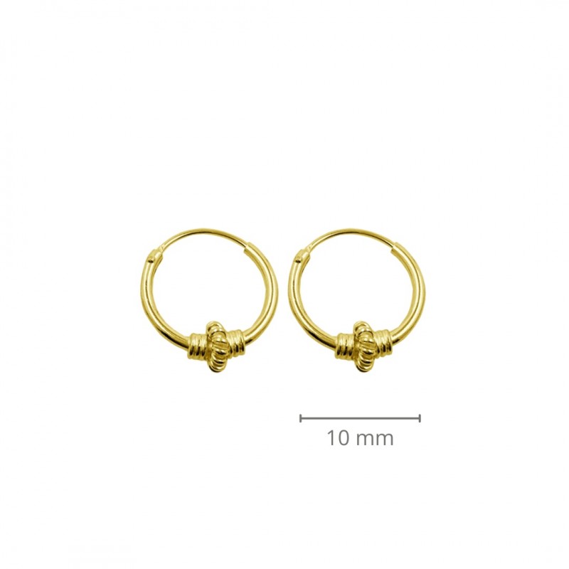 ARGOLLAS AROS PLATA DE LEY BAÑADOS ORO 18 K ESTILO BALI DE 10 MM DIÁMETRO