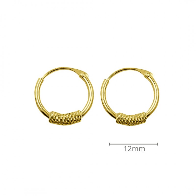 ARGOLLAS AROS PLATA DE LEY BAÑADOS ORO 18K ESTILO BALI 12 MM DIÁMETRO