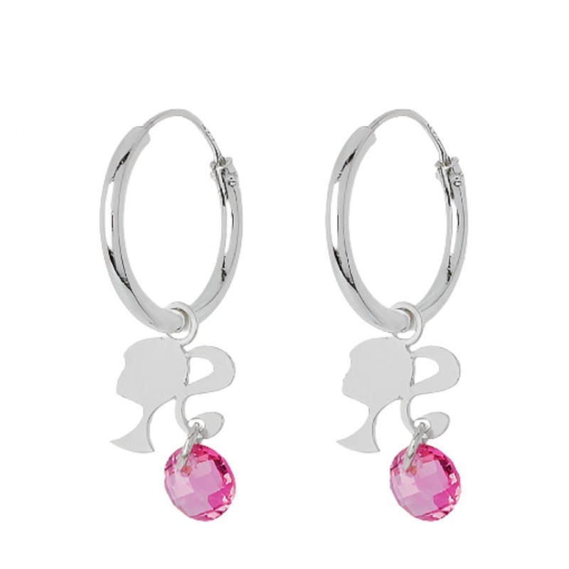 ARGOLLAS AROS PLATA DE LEY 12 MM CIERRE AFRICANO, BARBIE, CON CIRCONITA ROSA COLGANDO