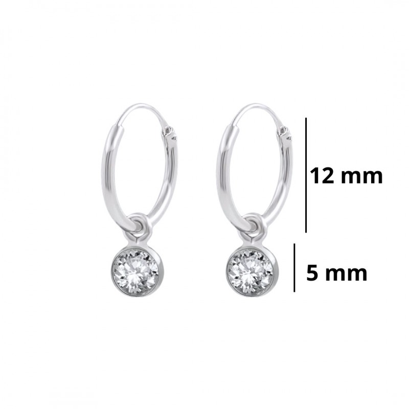 ARGOLLAS AROS PLATA DE LEY TUBO DE 1.2 CMS DIÁMETRO Y CIRCONITA INFERIOR 5 MM