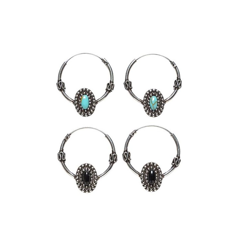ARGOLLAS AROS PLATA DE LEY BALI DE 18 MM DIÁMETRO, CON PIEDRA CENTRAL RODEADA DE PUNTOS EN RELIEVE