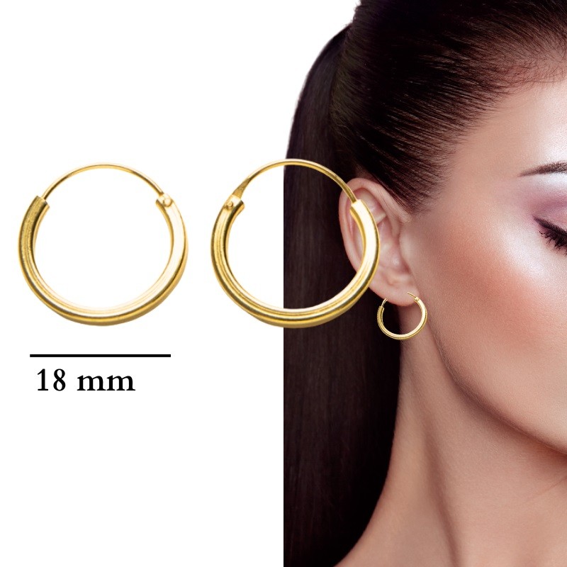 ARGOLLAS AROS PLATA DE LEY BAÑO ORO 18K TUBO CUADRADO 1.5 MM-18 MM DIÁMETRO
