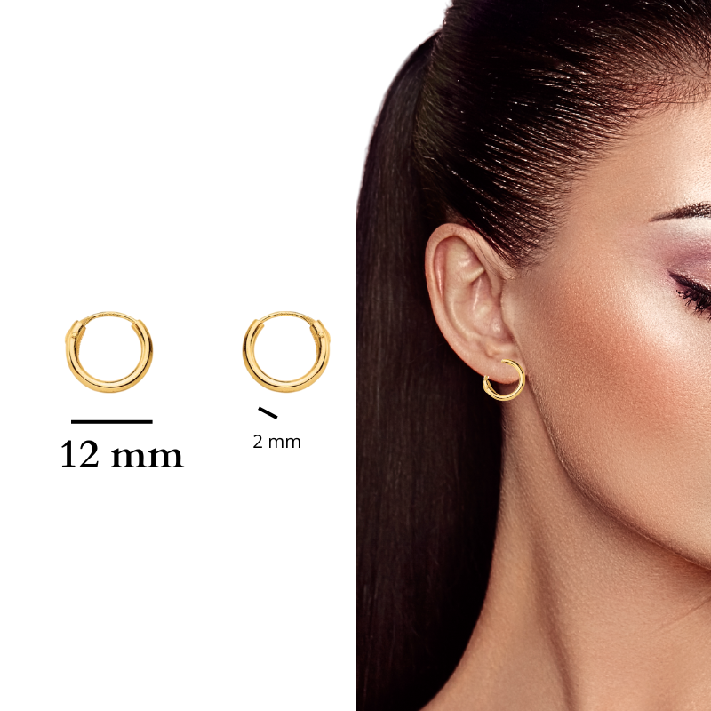 ARGOLLAS AROS PLATA DE LEY BAÑO ORO 18K DE 2 MM GROSOR- 12 MM DIÁMETRO