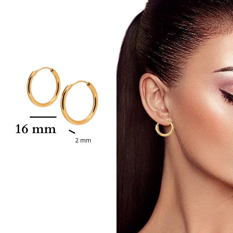 Compra argollas aros de plata de ley con baño de oro de 18K, 16 mm de diámetro y 2 mm de grosor. Entregas rápidas en 24-72 horas laborables en península, en estuche de regalo. Envío gratis para compras superiores a 20€, resto 3€. Perfectas para regalo y uso diario. Calidad y estilo garantizados en cada pieza. Encuentra la joya ideal en nuestra tienda y disfruta de un servicio ágil y confiable.