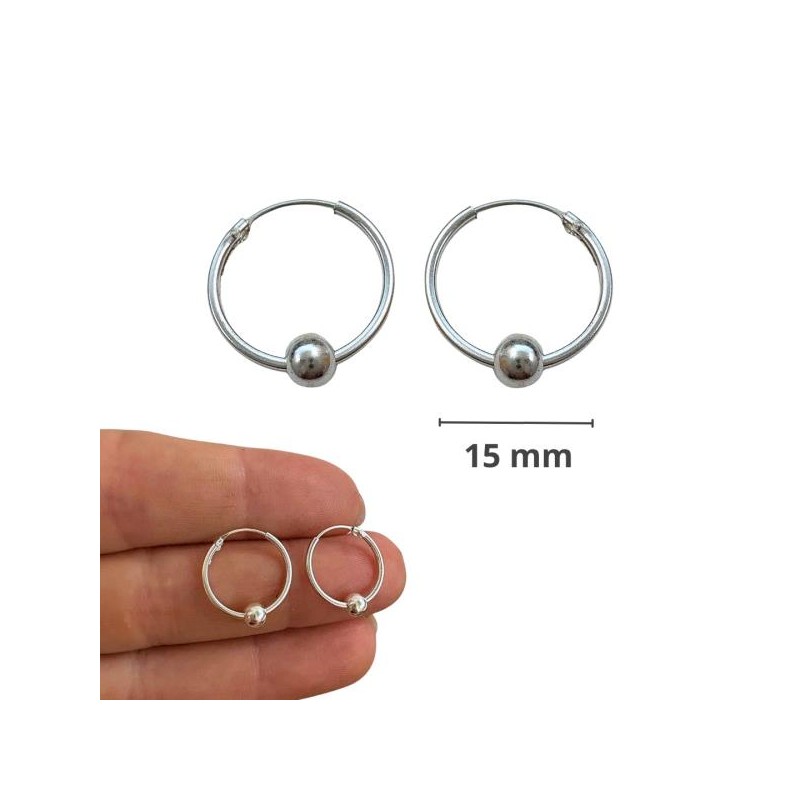 ARGOLLA AROS PLATA DE LEY TUBO DE 1.5 MM GROSOR - 15 MM DIÁMETRO UNA BOLITA INFERIOR REMOVIBLE
