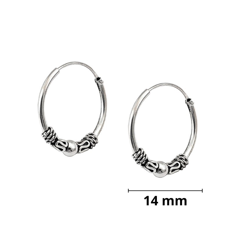 ARGOLLAS AROS PLATA DE LEY ESTILO BALI 14 MM DIÁMETRO UNA BOLA INFERIOR Y GRECAS A AMBOS LADOS