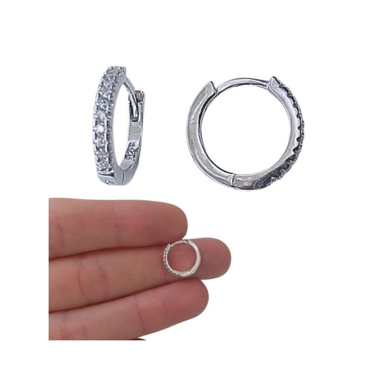 ARGOLLAS PLATA DE LEY 12 MM DIÁMETRO CIRCONITAS BLANCAS