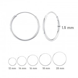 Argollas fabricadas en plata de ley 925 mm, de 1.5 mm de grosor, tipo tubo hueco, y de 2 cms ( 20 mm) de diámetro. El cierre cuenta con un palillo y bisagra que facilita su colocación. El precio indicado es de una pareja. Se entregan en estuche de regalo.