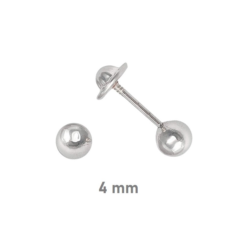 PENDIENTES PLATA DE LEY BOLA 4 MM ROSCA BEBÉS
