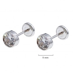PENDIENTES PLATA ROSCA BEBÉ CIRCONITA BLANCA 5 MM MONTURA RUSA