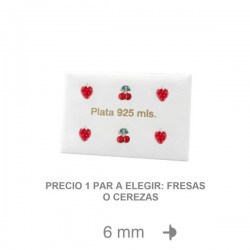 Pendientes fabricados en plata de ley 925 milésimas con cierre de rosca que impiden que los bebés se lo claven a la hora de dormir. Diseñados en forma de fresas o cerezas se puede elegir, diseño en el momento de la compra. Se entregan en estuche de regalo. Envíos rápidos en 24-72 horas laborables a península.