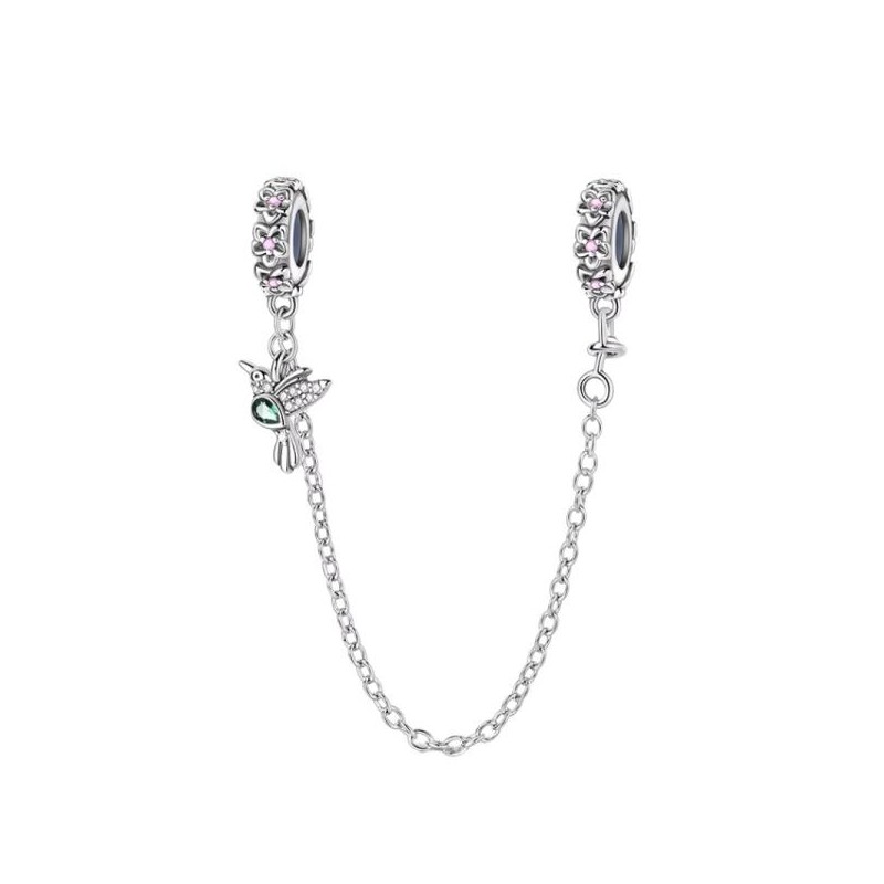 CADENA SEGURIDAD PLATA DE LEY COLIBRÍ CIRCONITA VERDE, COMPATIBLE CON PANDORA, CHAMILIA, ETC..