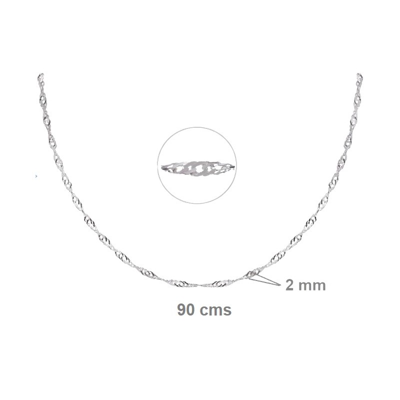 CADENA PLATA DE LEY 90 CMS SINGAPUR 2 MM DE GROSOR CIERRE MOSQUETÓN REDONDO