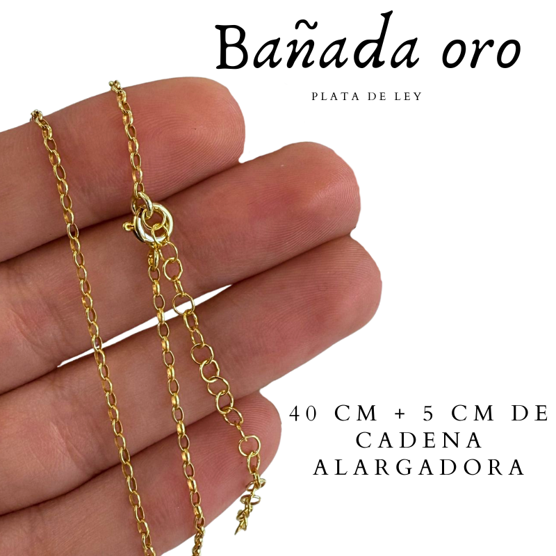 CADENA PLATA DE LEY BAÑADA EN ORO DE 18K, TIPO ROLO DE 40 CM + 5 CM DE CADENA ALARGADORA