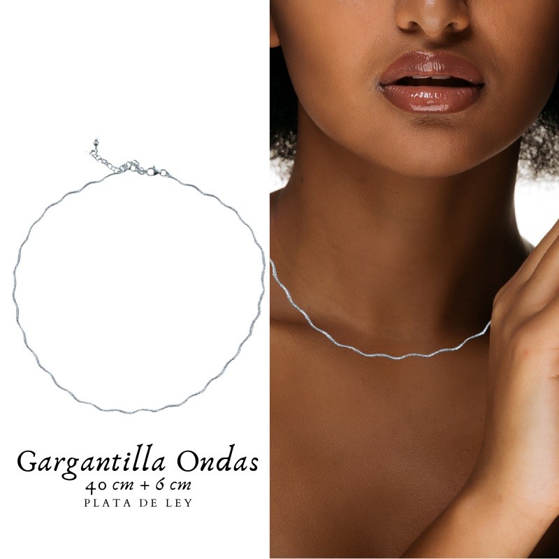 GARGANTILLA PLATA DE LEY ONDAS 40 CM + 6 CM DE CADENA ALARGADORA
