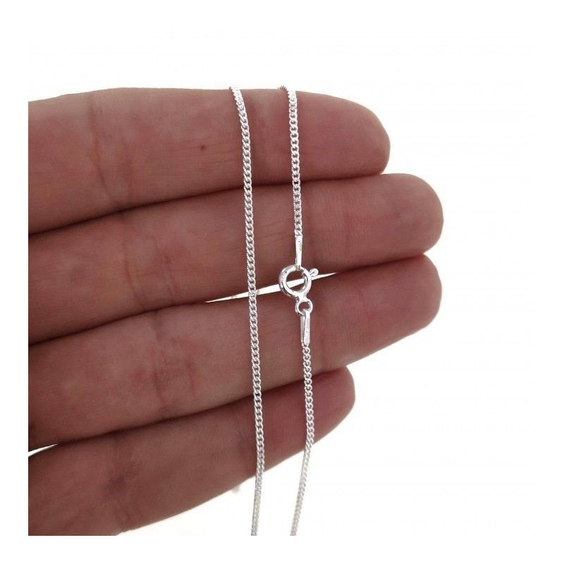 Cadena fabricada en plata de ley 925 mm, estilo barbada de 1.5 mm de grosor y 40 cms de longitud.