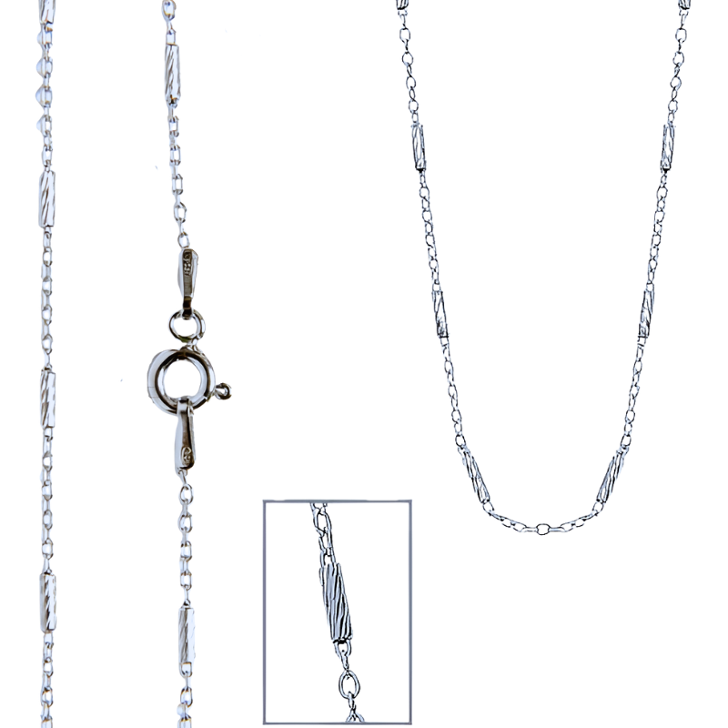 CADENA PLATA DE LEY FORZADA ALTERNANDO TUBITOS DE 38 CMS LONGITUD, CIERRE MOSQUETÓN