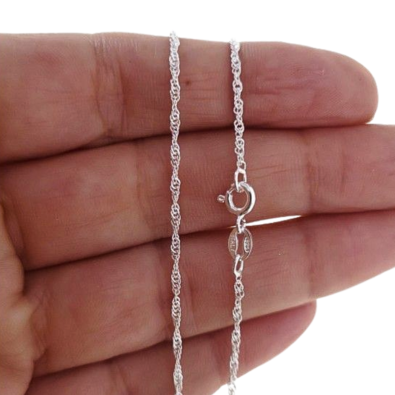 Cadena de plata de ley de 45 cm con diseño Singapur de 2.5 mm de grosor y cierre mosquetón redondo. Brillante, elegante y resistente, ideal para lucir sola o con colgantes. Entregas rápidas en 24 a 72 horas laborables a península. Incluye estuche de regalo. Envío gratuito en compras superiores a 20 euros. Coste estándar de envío 3 euros.
