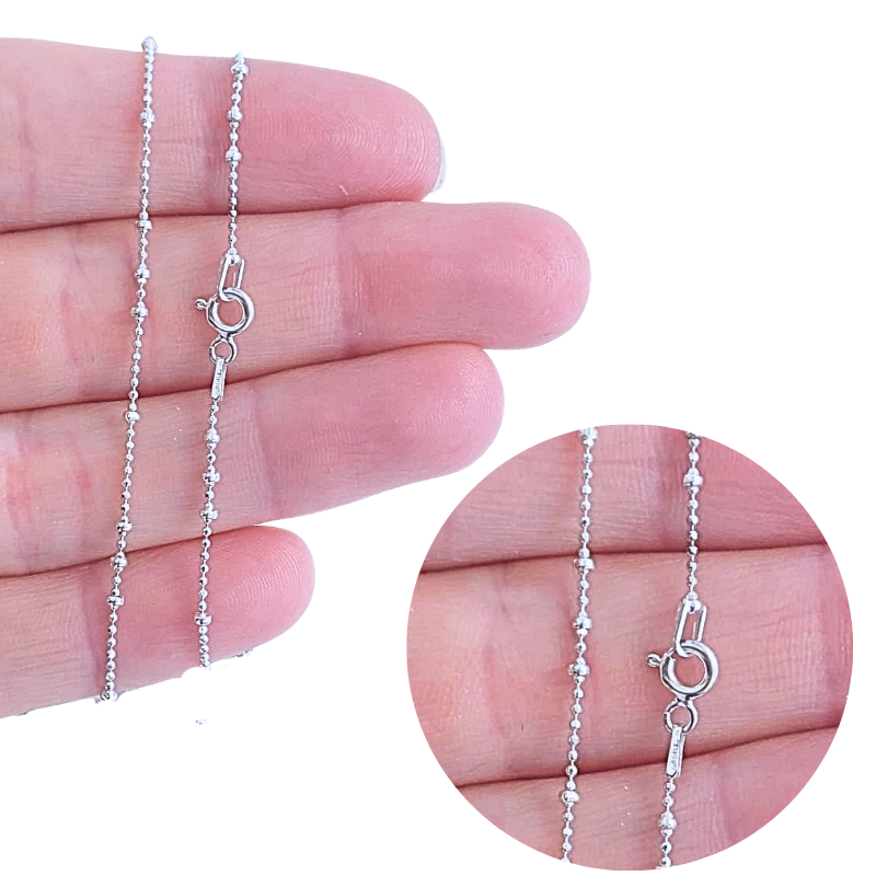 CADENA PLATA DE LEY MINI BOLITAS DECORADA CON 3 Y 1 BOLITA MAS GRANDE 47 CM DE LONGITUD