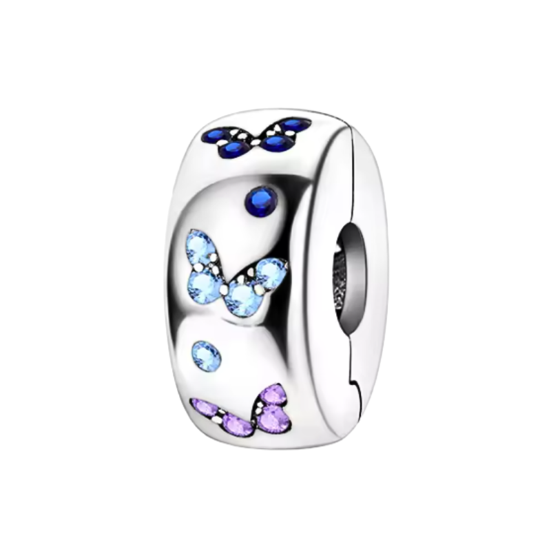 ABALORIO TOPE PLATA DE LEY CON MARIPOSAS DE CIRCONITA CIRRE DE CLIP