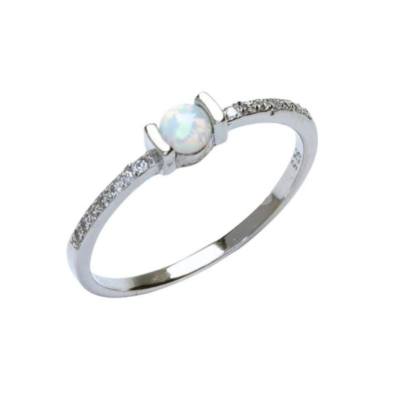 ANILLO PLATA DE LEY RODIADO OPALO CENTRAL CIRCONITAS BLANCAS A AMBOS LADOS