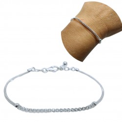 PULSERA PLATA DE LEY CADENA COLA DE SERPIENTE HILERA DE CIRCONITAS BLANCAS CENTRALES REDONDAS