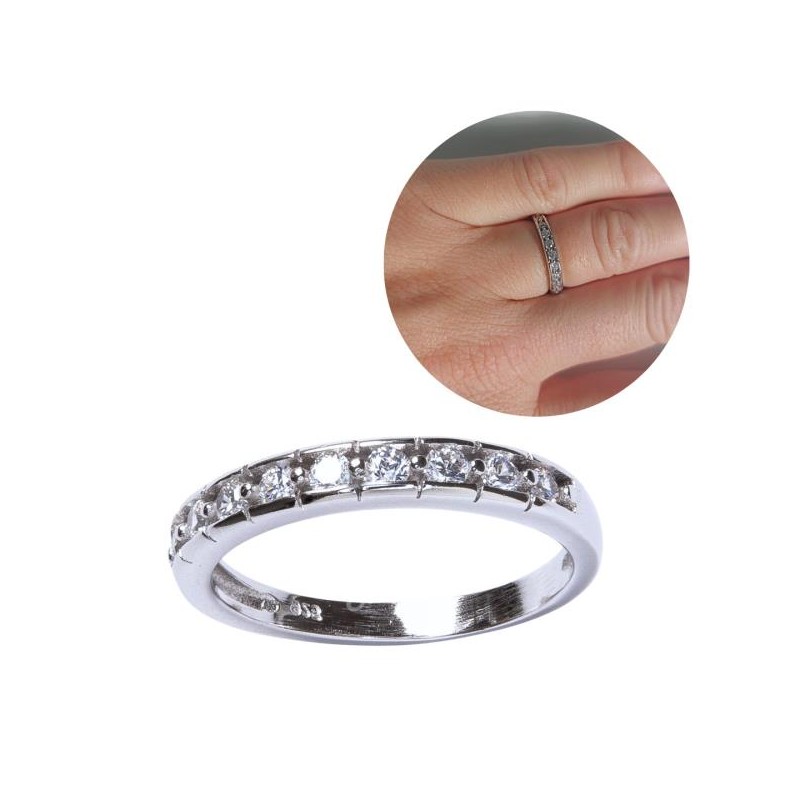 ANILLO PLATA DE LEY TIPO ALIANZA CON CIRCONITAS BLANCAS SUPERIORES REDONDAS EMBUTIDAS EN LA PIEZA