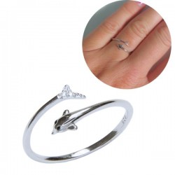 ANILLO PLATA DE LEY DELFIN COLITA CON CIRCONITAS BLANCAS ADAPTABLE