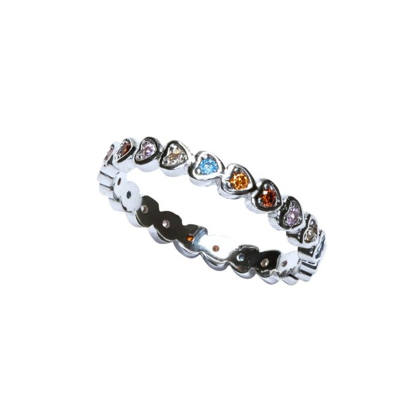 ANILLO PLATA DE LEY RODIADO CORAZONES CIRCONITAS DE COLORES POR TODO EL CONTORNO