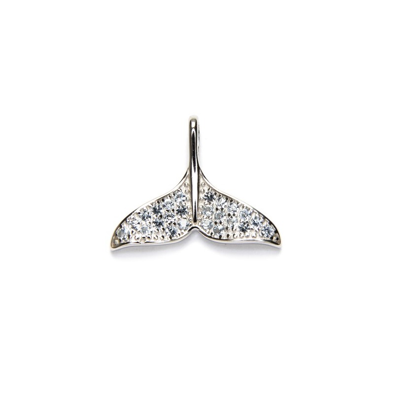 Colgante fabricado en plata de ley, con recubrimiento de rodio que le aporta mayor brillo y durabilidad. Dispone de circonitas blancas encastradas. En forma de cola de ballena. Medidas: 1.7 cms de alto x 2 cms de ancho.
