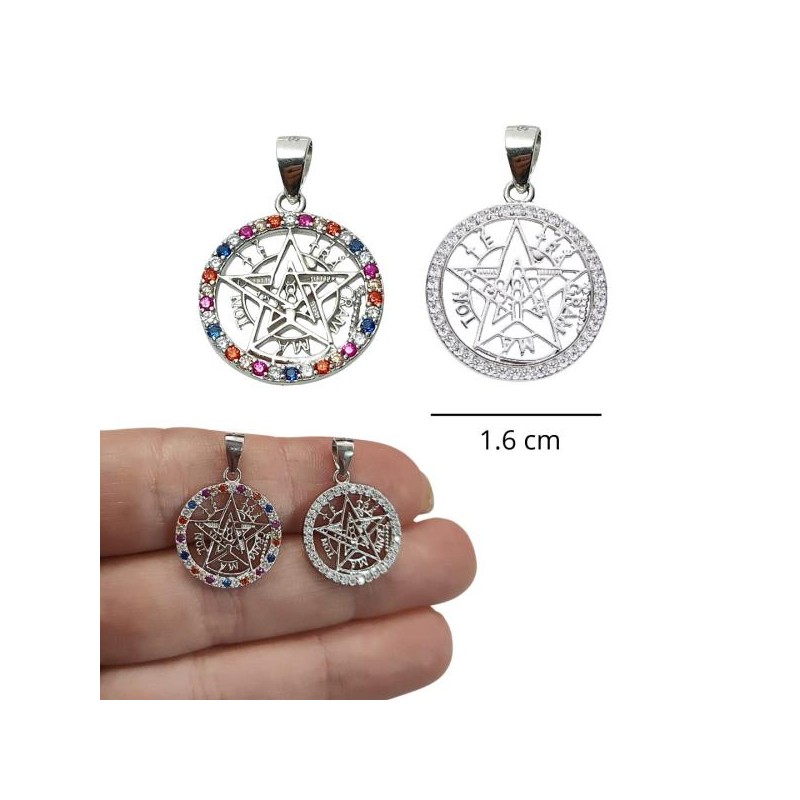 COLGANTE PLATA DE LEY RODIADO TETRAGRAMATRON CIRCONITAS BLANCAS O DE COLORES ELEGIR EN LA COMPRA