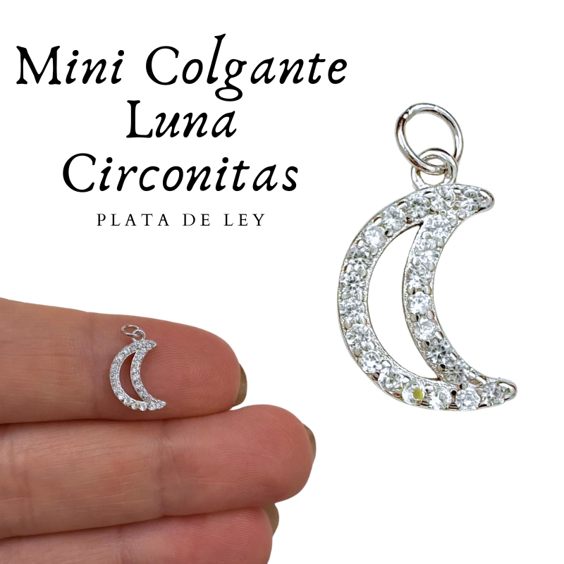 MINI COLGANTE PLATA DE LEY RODIADA EN FORMA DE LUNA, CON CIRCONITAS BLANCAS 4 GARRAS