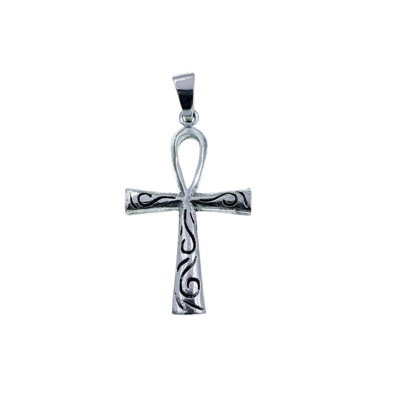 Colgante fabricado en plata de ley 925 mm, en forma de cruz de la vida o cruz Egipcia. Simboliza la resurrección y la inmortalidad. Dimensiones: 4 cms de alto x 2 cms de ancho. Se entrega en estuche de regalo.
