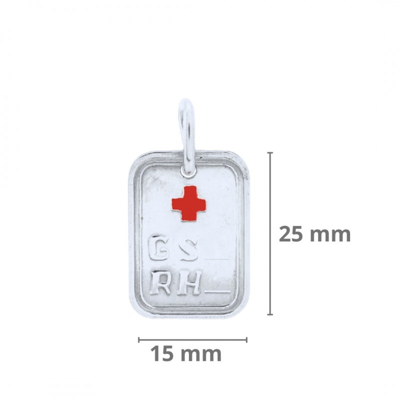 COLGANTE PLATA DE LEY CHAPA GRUPO SANGUÍNEO 25 X 15 MM