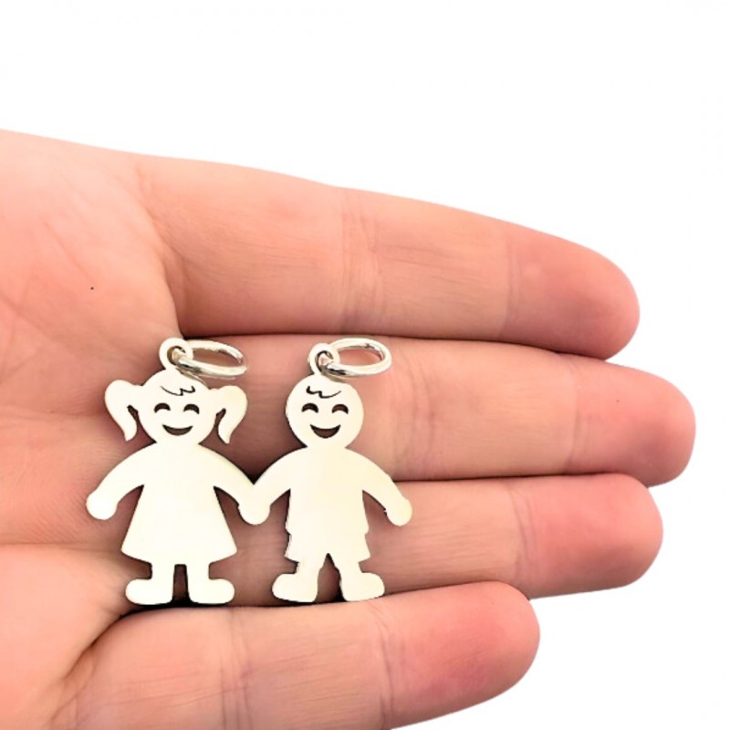COLGANTE PLATA DE LEY NIÑO Y NIÑA SONRIENTES TAMAÑO GRANDE