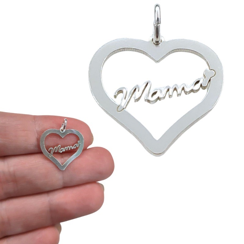 COLGANTE PLATA DE LEY SILUETA CORAZÓN MAMÁ EN EL CENTRO DE 1.8 CMS ALTO Y ANCHO