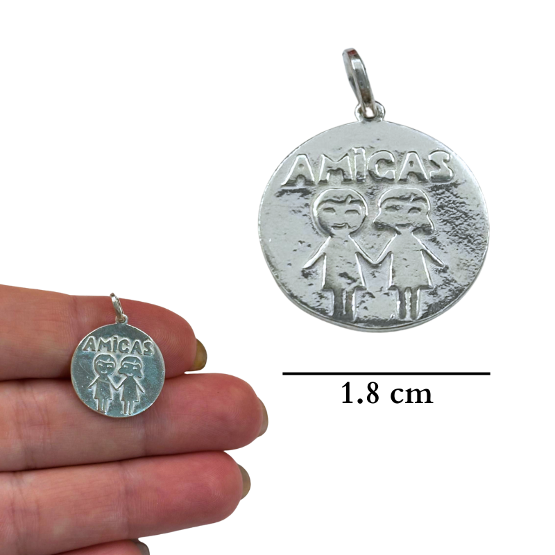 COLGANTE PLATA DE LEY AMIGAS DOS NIÑAS UNIDAS POR LA MANO, 1.8 CM DIÁMETRO