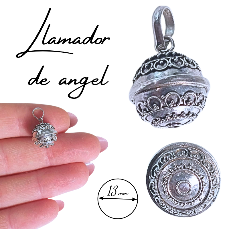 COLGANTE PLATA DE LEY LLAMADOR DE ANGEL 13MM DE DIAMETRO CON DIBUJOS LABRADOS EN RELIEVE