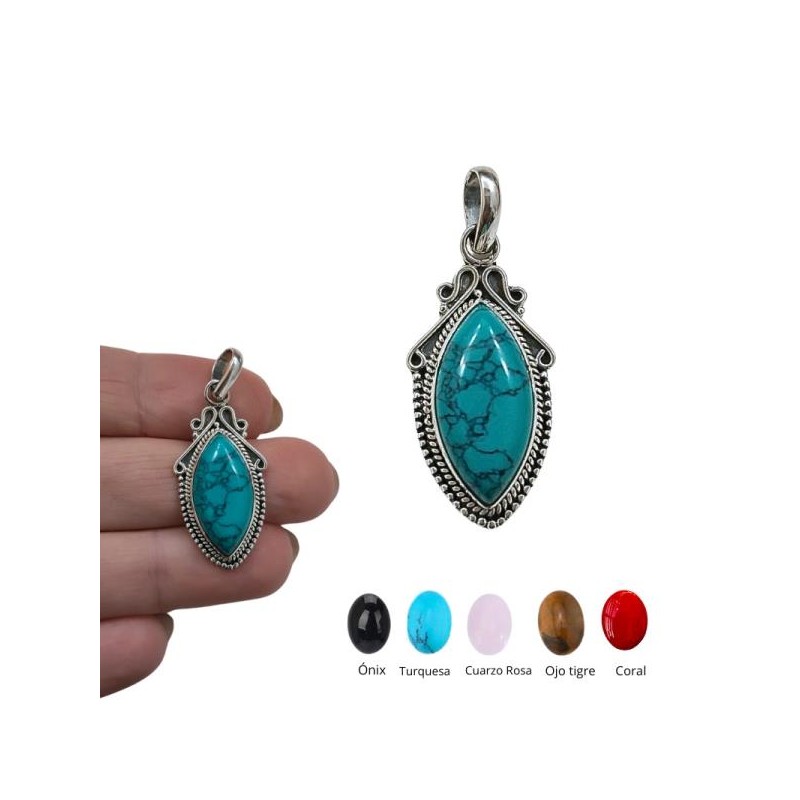 COLGANTE PLATA DE LEY PIEDRA NATURAL CENTRAL A ELEGIR EN LA COMPRA, 3.5 CMS X 1.7 CMS DIMENSIÓN TOTAL